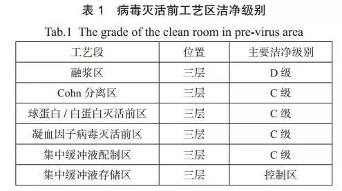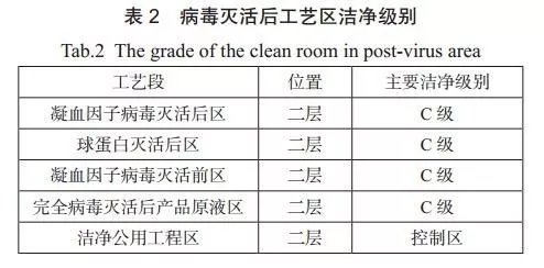 本車間三層病毒滅活前工藝區的潔凈區域劃分原則見表2。